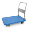 ‘- izdelan iz barvane pločevine in Polypropilena; – 2 vrtljivi kolesi in 2 fiksni kolesi; – skupna nosilnost: 300 kg; – višina: 18/84 cm – teža vozička: 14,5 kg.